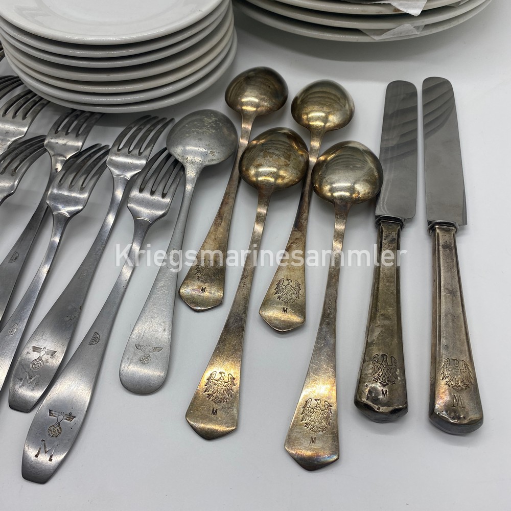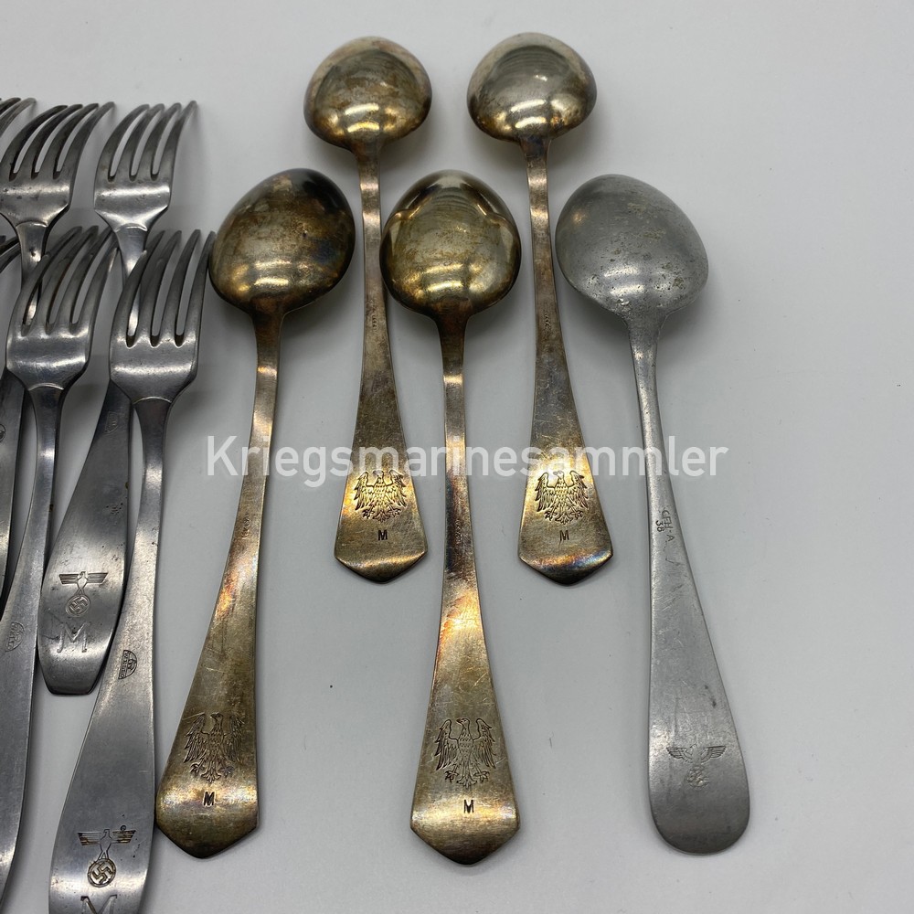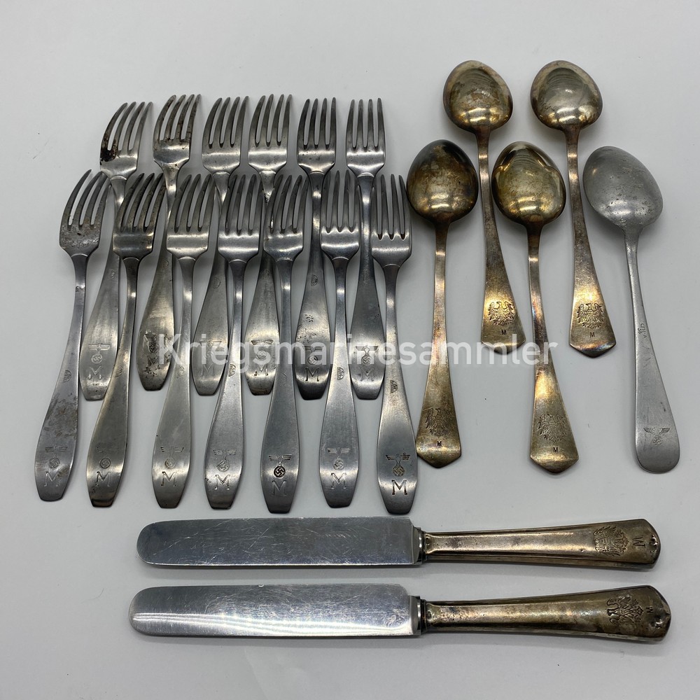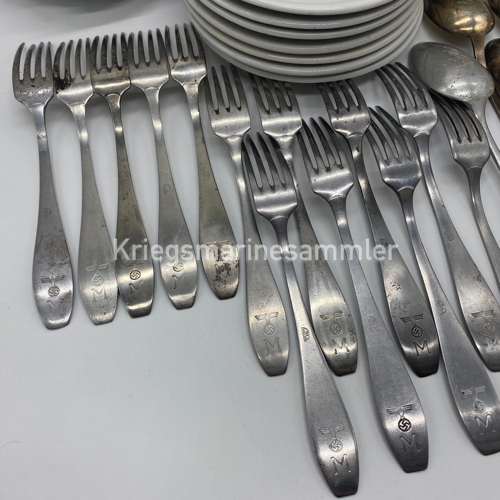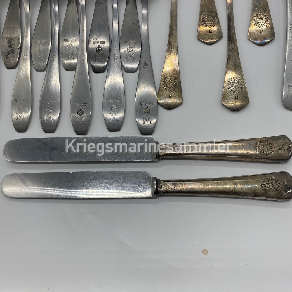 11 metal Kriegsmarine Forks, 4 Silver Reichsmarine Spoons, 2 Silver Reichsmarine Knifes.