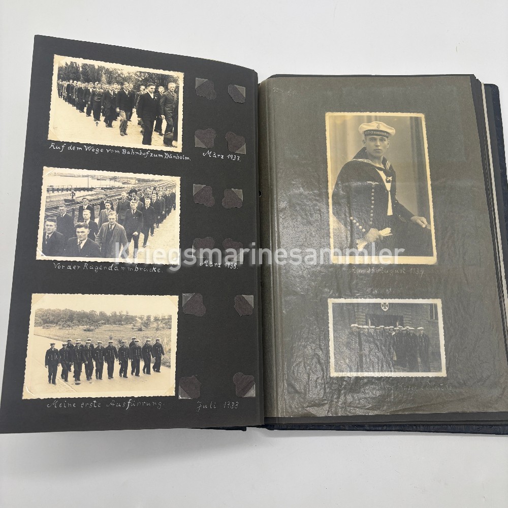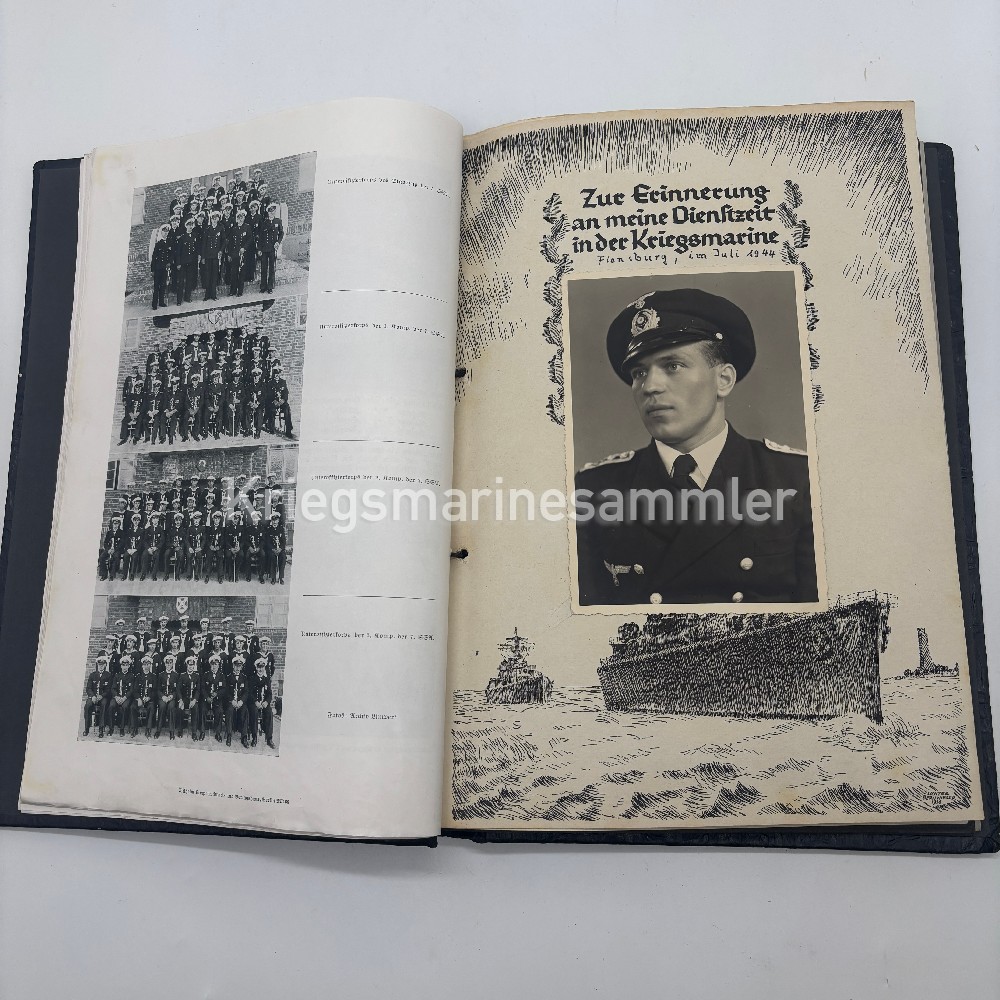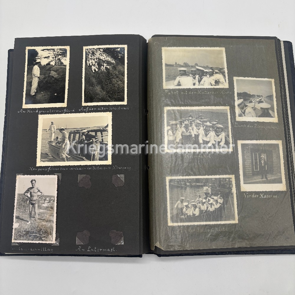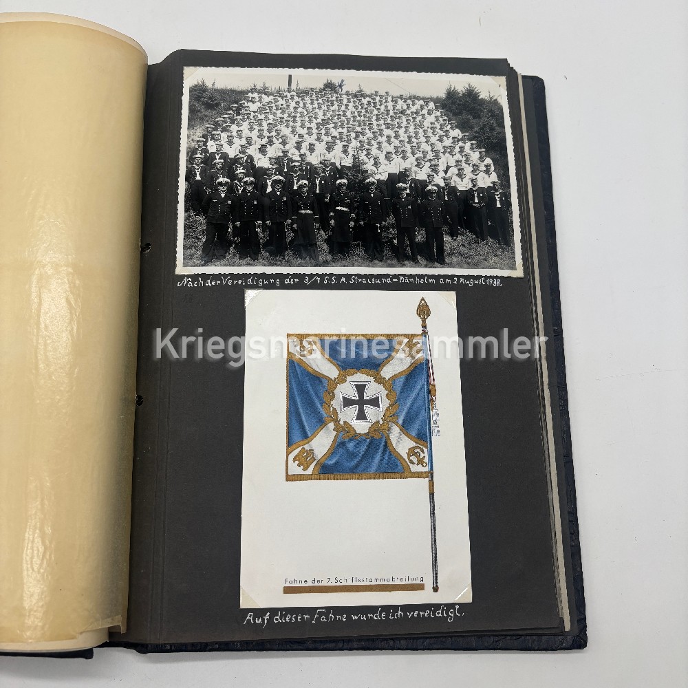 Nice Urkunde/Album of a person in the 7. Schiffsstammabteilung, missing some pictures but also containing some rare pictures as 3 are with the Very Rare KA Feldmütze.